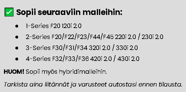 Pääsääntöisesti tuotteeemme sopivat suoraan vanhan osan tilalle ilman koodauksia. Muistathän varmistaa sopivuus autoosi aina tuotteen kuvauksesta.